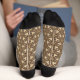 This stylish sock features an eye-catching all-over print of an abstract geometric floral pattern in neutral tones of brown and tan, creating a stunning contrast that is sure to turn heads. The pattern is balanced with a beautiful colour palette to create a harmonious and cohesive design.