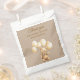 This cute favor bag is a wonderful way to give your friends and family a little treat to take home with them from the Baby Shower. A sweet teddy bear is holding onto a big bouquet of flowers. A light tan lattice work covers the background.
