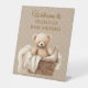 Neutral Brown Teddy Bear Baby Shower Pedestal Sign
