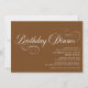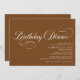 Formal birthday dinner invitations featuring the words "Birthday Dinner" in vintage-style calligraphy script. Your event details are in the lower right corner. White text on a dark orange background.