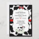 Cow Print Baby Shower Invitations with a red ribbon. Cute graphic of a cow that can be removed if you prefer. .Neutral design for girls or boys.