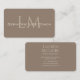 This minimalist business card features a dark taupe palette with refined monogram detailing and professional text placement. Designed for modern brands and elevated personal use, it offers a calm, polished presence with clean typography and balanced spacing. Ideal for entrepreneurs, creatives, and professionals seeking a timeless card that communicates confidence, clarity, and understated sophistication. Suitable for consultants, accountants, real estate professionals, designers, attorneys, and other client-facing roles.