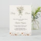 An elegant soft ivory background, decorated with a floral bouquet with bow in muted green and ivory. Personalize and add a name and party details. Text: Baby in Bloom