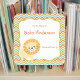 Neutral Gender Lion Baby Bookplates Square Sticker