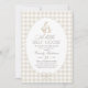 Celebrate the arrival of a little one with this neutral beige gingham goose themed baby shower invitation.