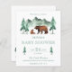 Neutral Green Forest Bear Baby Shower Invitation