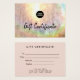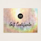 This neutral, beige design has a touch of holographic colours and a grunge texture. There is a business logo, and a gift certificate layout.