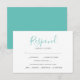 Designed to coordinate with my tropical leaves wedding stationery set, this simple rsvp card features your reply information in a trendy whimsical script typography. Space is provided for guests to add their rsvp information and simple meal choice options. The card reverses to a complimentary sea glass turquoise colour. To see matching beach wedding stationery by Victoria Grigaliunas visit www.zazzle.com/dotellabelle