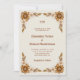 These trendy wedding invitations feature a frame of stylish retro flowers and leaves in vintage neutral colours like brown, beige, gold, olive green, and ivory cream with retro style text and your monogram or initials.