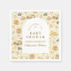 A sweet storybook-style safari design featuring gentle watercolor baby animals including lions, giraffes, and elephants surrounded by soft jungle greenery and delicate botanical details. The warm neutral palette of cream, honey gold, and soft olive creates a timeless nature-inspired aesthetic, while the elegant arched layout leaves beautiful space for personalized event details.