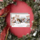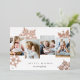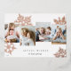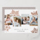 Unique modern holiday card design features four favourite photos arranged side by side with oversized rose gold foil snowflake silhouettes in the background. Personalise with your custom holiday greeting and family name(s) beneath in classic lettering; shown with "Joyful Wishes."