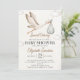 Celebrate your baby's arrival with our charming, gender-neutral baby shower design, featuring a classic white stork flying over a soft, light brown sky, carrying a sweet baby. Perfect for a boy, girl, or surprise shower, this elegant and minimalist design adds a warm and timeless touch to your event. For complementary elements, see our collection of this lovely design.