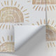 Add a touch of warmth and charm to your space with this Neutral Sun & Rainbow Blockprint Peel & Stick wallpaper. Featuring a rustic design of sun and rainbow motifs in soft, earthy tones of beige, tan, and cream, this wallpaper brings a cosy and inviting feel to any room. The hand-printed blockprint style adds a textured, artisanal quality that enhances the overall aesthetic. This removable wallpaper is both stylish and practical, allowing for easy installation and removal without damaging your walls. Perfect for a nursery, living room, or any space that needs a subtle yet uplifting decor element.