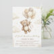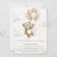 Neutral Teddy Bear Baby Shower bow Green Balloons Invitation