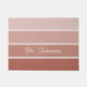 This trendy doormat features four stripes in varying ombre gradients of terracotta, tan, and neutral beige and your name or monogram in script typography for a boho and modern look.