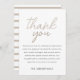 This elegant and contemporary thank you card is designed for a baby shower. The front showcases neutral beige lettering against a crisp white background, while the reverse side features a delicate pastel beige and white stripe pattern. With its clean and modern design, this card serves as the perfect canvas for easy personalisation, allowing you to convey your gratitude in a thoughtful and stylish manner.