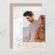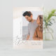 An ethereal and airy save the date design featuring a vertical photo aligned at the right, with neutral watercolor swashes at the top and bottom. "Save the Date" appears at the lower left corner in grey calligraphy script lettering. Personalise with your wedding date, names, and location, and add additional details like your wedding website to the back.