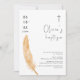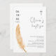 Minimalist watercolor feather cross christening baptism invitation. To change the colours and fonts choose edit this design further to open up additional options for customisation.