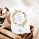 These stunning wedding invitations feature a faux gold geometric frame surrounded by lush, watercolor neutral flowers in neutral, earth tone colours such as beige peach, dusty rose, and soft green with gold accents and leaves. An elegant boho floral look on a simple white background.