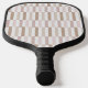 This pickleball paddle has a geometric design of rectangles with diagonal ends in neutral tones of tan and pink, repeating throughout the design. If you like the design but prefer different colours, message me.