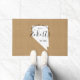 Modern farmhouse personalised doormat with your family name inside your state map. Faux burlap canvas texture background. Click Customise It to add your own text and images and create a unique one of a kind design!