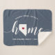 Show some home state pride with this cute rustic blue throw blanket featuring "home" in white calligraphy script lettering with a silhouette map of the state of Nevada standing in for the letter "O." A red heart illustration inside the state map completes the design; you can change the position of the heart to your home city by opening the design tool and dragging the heart shape to your favourite spot. Personalise with your home city, family name and year established to create a perfect and memorable housewarming gift or addition to your new home.