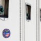 Badge of Nevada with flag of Nevada and flag of USA colors, rounded shape.