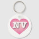 This keychain features a calm, cool, and collected pink heart with a white washed centre containing the bold, white, upper case letters NV, the official abbreviation of Nevada, the silver state.