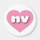 This magnet features a calm cool pink heart containing the bold, white, lower case letters nv, a playful abbreviation for the state of Nevada, the silver state.