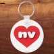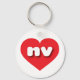 This keychain features a vibrant red heart containing the bold, white, rounded lower case letters nv, a playful abbreviation for the state of Nevada, the silver state.
