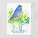 A post card of a mountain bluebird perched on a sagebrush plant drawn with sepia ink and painted with watercolor. Artwork is inspired by the Nevada State bird and Nevada State flower.