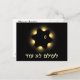 For Yom HaShoah, Holocaust Remembrance Day. A black and yellow fractal image recalling the yellow "Star of David" which the Nazis required Jews to wear during the Holocaust. Hebrew text reading, "Le Olam Lo Od" (Never Again) also appears. Never forget; never let it happen again.