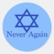 Never Again Jewish Holocaust Remembrance Blue Classic Round Sticker