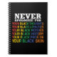This spiral notebook features the text " Never Apologise for Your Black Thoughts, Your Black Loyalties, Your Black Motives, Your Black History, Your Black Pride or Our Black Skin". It is perfect for African-Americans for freedom celebrations, emancipation celebrations, Juneteenth, July 19th or any other occasion.