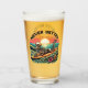 A bold and playful drinking glass featuring a skeleton riding a surfboard on a crashing ocean wave, set against a vibrant sunset background with the phrase “Never Better.” This ironic and carefree artwork blends surf culture with dark humour—perfect for beach lovers, alternative style fans, and those who embrace life with a rebellious, lighthearted edge.