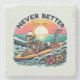 A bold and playful coaster featuring a skeleton riding a surfboard on a crashing ocean wave, set against a vibrant sunset background with the phrase “Never Better.” This ironic and carefree artwork blends surf culture with dark humour—perfect for beach lovers, alternative style fans, and those who embrace life with a rebellious, lighthearted edge.