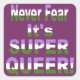 "Never Fear It's Super Queer" in Transgender Gender Queer Pride Flag colours (Purple, Green & White) with Transgender symbol