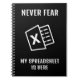 Spreadsheet themed cover of this notebook will put a smile on the face of the Excel guru in your circle: "Never Fear My Spreadsheet is Here".
