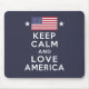 Are you looking for American collectibles or patriotic gifts for veterans, moms, or dads? Show your love of country and support for all men and women who serve this great nation with the best patriotic gifts that show duty, honour, and country. God bless America and Peachtree City, Georgia. The original medium Keep Calm font states in white text: “Keep Calm and Love America”. The classic Tudor crown graphic is replaced with the red, white, and blue American Flag.