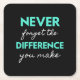 Never Forget The Difference You Make design. This is a short motivational quote which is great as an employee appreciation gift. Also suitable as a coworker office gift.