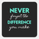 Never Forget The Difference You Make Square Sticker