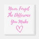 The phrase "Never Forget the Difference You Make" is a powerful reminder of the impact we can have on the world around us. It encourages us to recognise the positive influence our actions, words, and presence can have on others. Whether it's a small gesture of kindness or a significant contribution to a cause, every individual has the potential to make a difference.