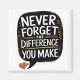 The phrase "Never Forget the Difference You Make" is a powerful reminder of the impact we can have on the world around us. It encourages us to recognise the positive influence our actions, words, and presence can have on others. Whether it's a small gesture of kindness or a significant contribution to a cause, every individual has the potential to make a difference.