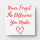 The phrase "Never Forget the Difference You Make" is a powerful reminder of the impact we can have on the world around us. It encourages us to recognise the positive influence our actions, words, and presence can have on others. Whether it's a small gesture of kindness or a significant contribution to a cause, every individual has the potential to make a difference.