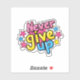 Bold and uplifting, our Never Give Up sticker features strong lettering and a clean design that stands out wherever you place it. Its minimal yet powerful style makes it perfect for daily motivation. A simple design with a big dose of determination!