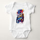 Customized as requested. Quality is fine, but this runs REALLY small. I have to add to the length, and we have many of these onesies to compare. Order much larger than you think. tiny bit of fuzziness in image but it's fine