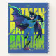 Check out this cartoon graphic of Batman running, featuring his name in electric colours behind him and the words "Never Give Up" along the bottom.