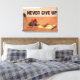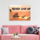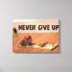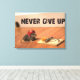 Canvas of a courageous brown mouse wearing a helmet attempting to steal cheese from a trap with the words "NEVER GIVE UP" in black font. - Completely Customisable - *Price may be higher or lower after customisation. Also available as a poster, a card, or framed.