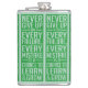 Well made flask, a little better than I had expected. Flask came in clear plastic box which gave it a nice presentation when I took it out of the zazzle packaging. Image is not printed on flask but on sticker. Don't know how this will hold up I haven't used it yet. This would make a Great gift! I plan to purchase more for friends! Cheers. I thought a little brighter than computer. Very crisp, writing wasn't