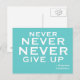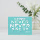Motivational postcard featuring the words of Winston Churchill. Never, never, never give up. From Donna Gotlib Designs and GotDonna. Printed by the fine folks at Zazzle.